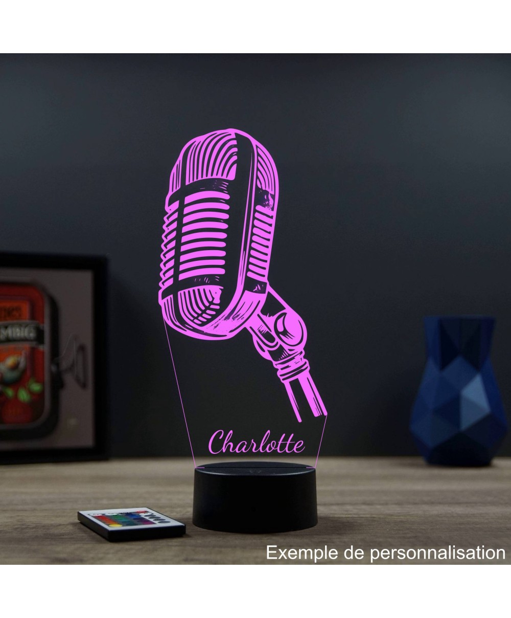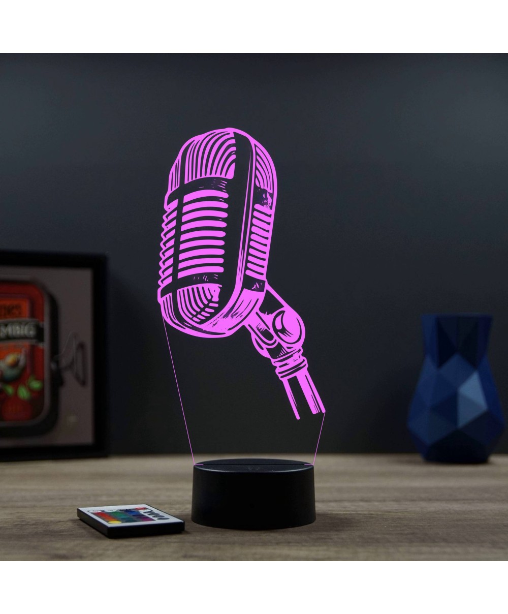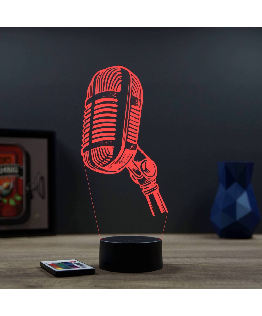 Offrez un mélange parfait de lumière, de design et de passion musicale avec la Lampe illusion 3D Micro d’enregistrement Chant.