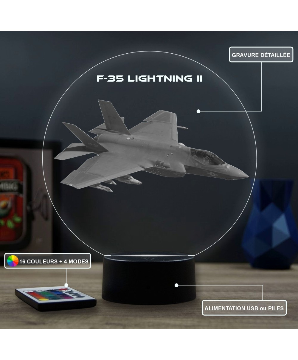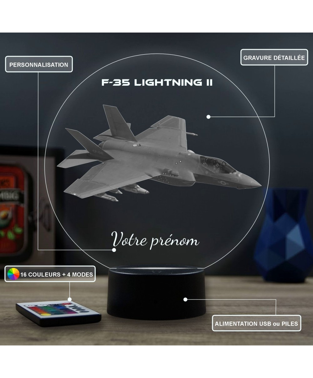 Lampe illusion 3D Avion de chasse F-35 Lightning II