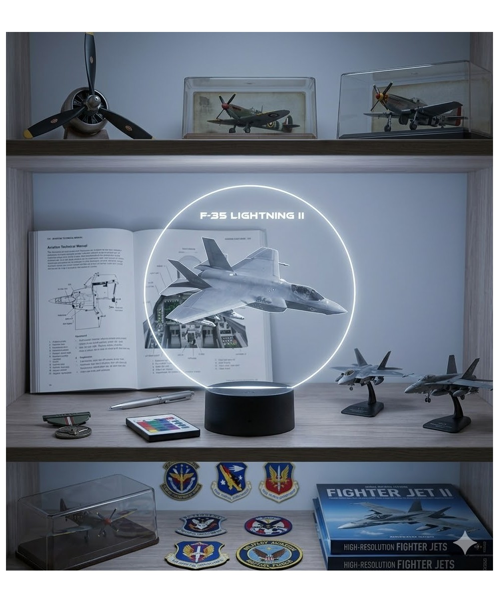Plongez dans l'univers de l'aéronautique avec cette lampe 3D reproduisant le mythique Lockheed F-35 Lightning II. Que ce soit pour sublimer une chambre d'enfant, apporter une touche moderne à votre salon ou personnaliser votre bureau, cette lampe LED crée une illusion d'optique saisissante qui impressionnera tous les passionnés d'avions de combat.