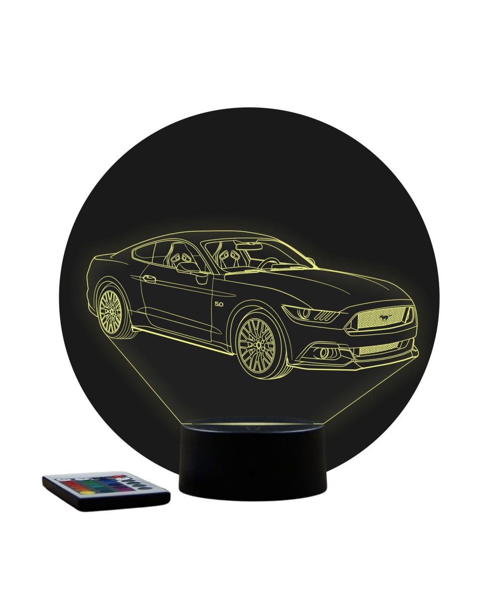 Le cadeau idéal et original pour tous les amoureux de voitures américaines et de Muscle Cars avec notre lampe illusion Ford Mustang GT de 2016.