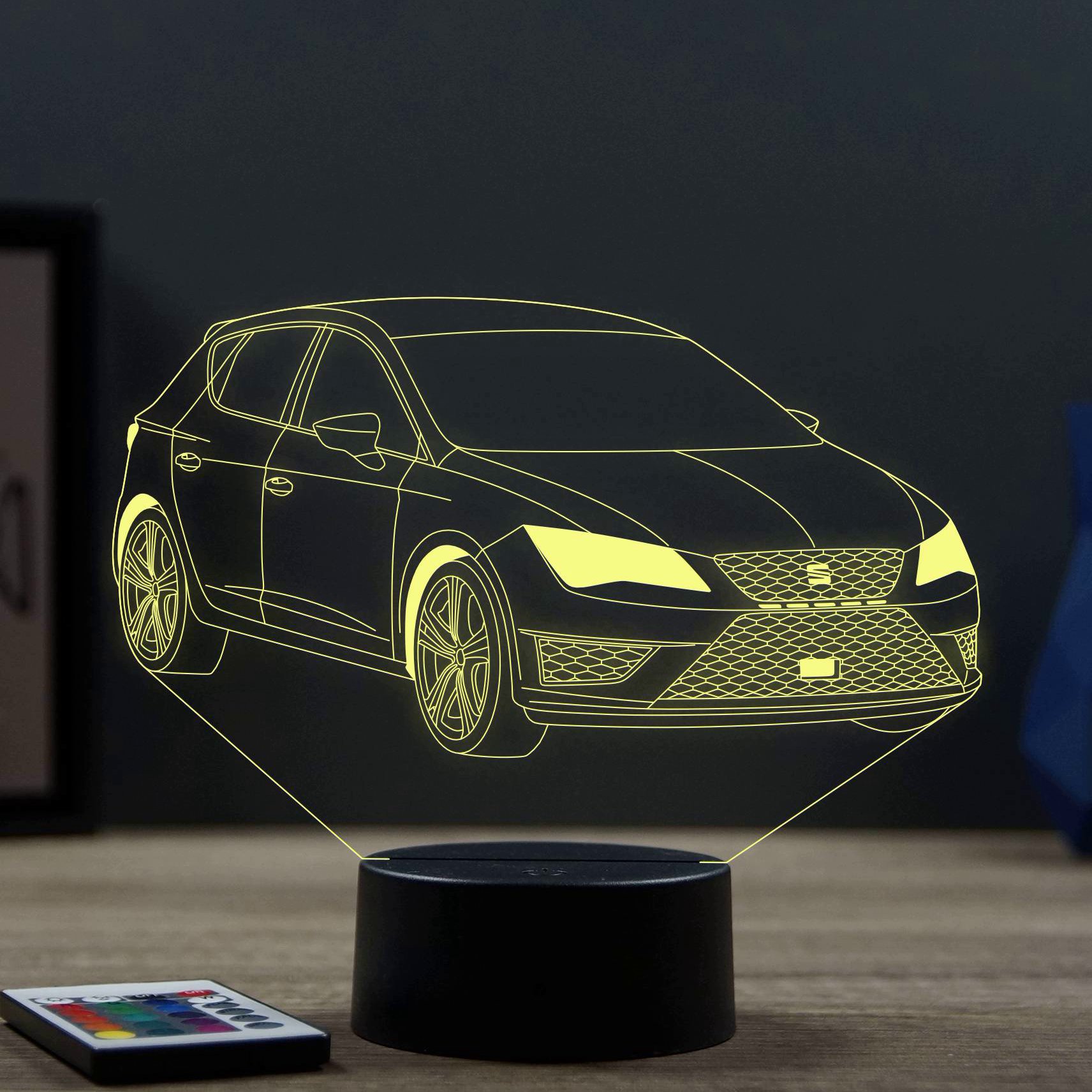 Cette lampe illusion 3D reproduit avec une grande précision les lignes dynamiques et le style racé de la Seat Leon Cupra, une icône des sportives ibériques. Grâce à son système de gravure laser, chaque détail de la carrosserie est mis en valeur et donne l’impression d’un modèle miniature en trois dimensions, comme suspendu dans la lumière.